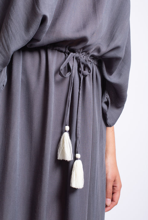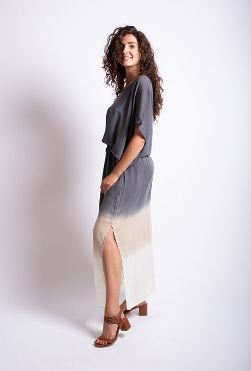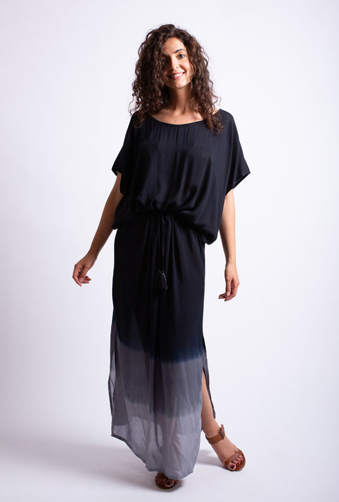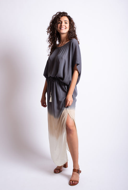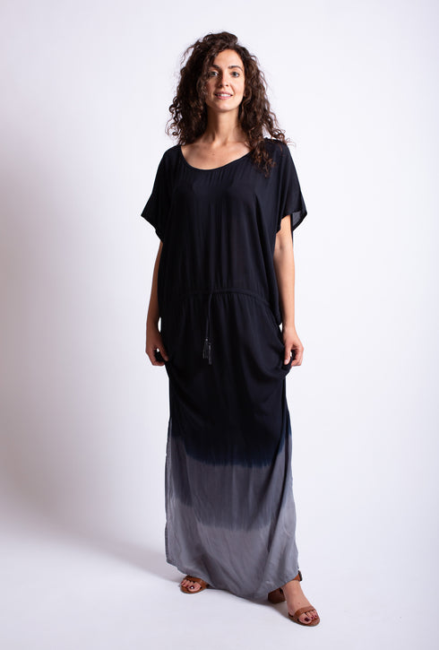 Il caftano lungo Mimma con coulisse in morbida viscosa vi farà risplendere con un look confortevole. Lo spacco sulla gamba e la coulisse che stringe la vita creano uno stile personalizzato e una silhouette femminile. Con questo capo sarete sicure di voi stesse e incantevoli.