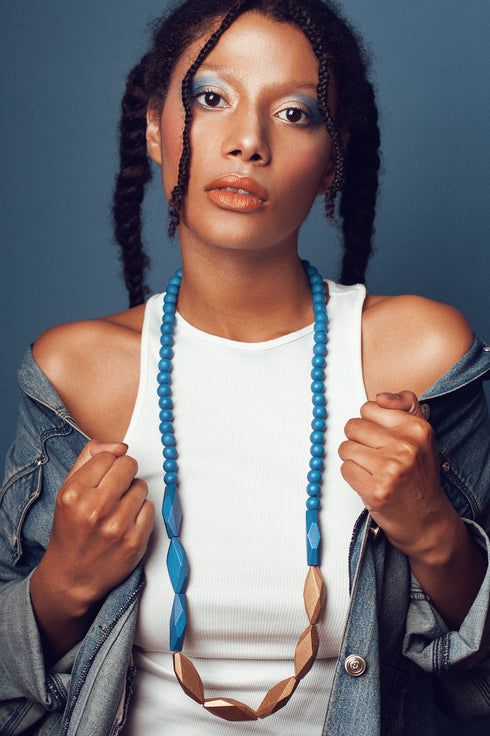 Questa lunga ed elegante collana Azaam è realizzata in legno di alta qualità a forma di pietre preziose e perle. Questo la rende un compagno ideale da indossare ovunque. Un vero colpo d'occhio!