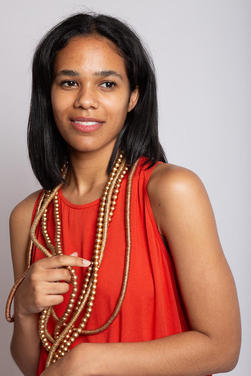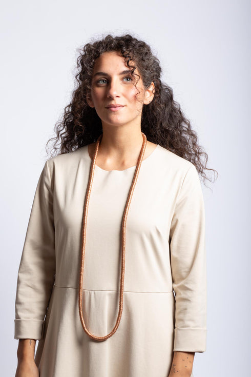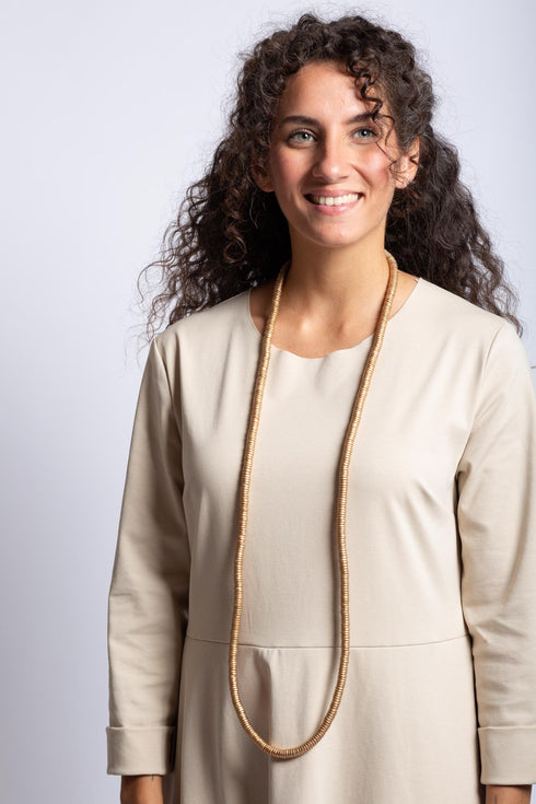 La collana Rory ha un design semplice, composto da dischi di legno in una combinazione di una tonalità delicata e di un colore d'accento.