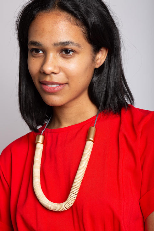 Catena regolabile Baran, una catena composta da dischi di legno con un elemento finale metallico su entrambi i lati. Questa catena è perfetta per variare il vostro look e farlo risaltare. Questo accessorio unico renderà il vostro abbigliamento ancora più dinamico.